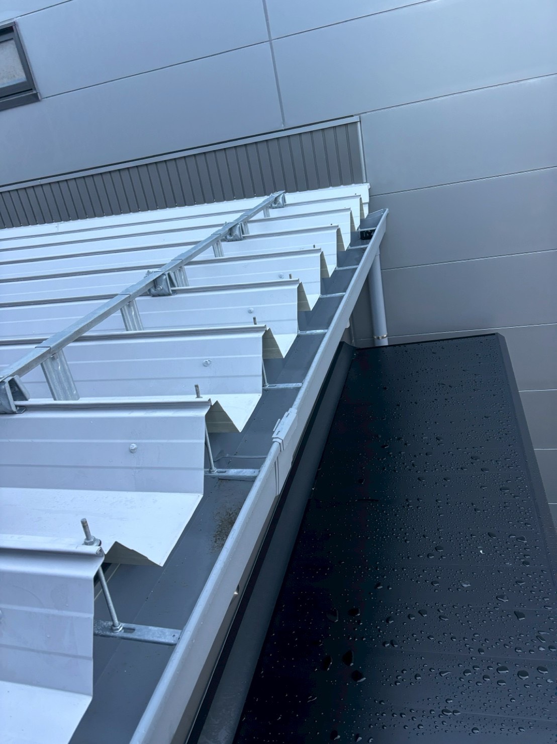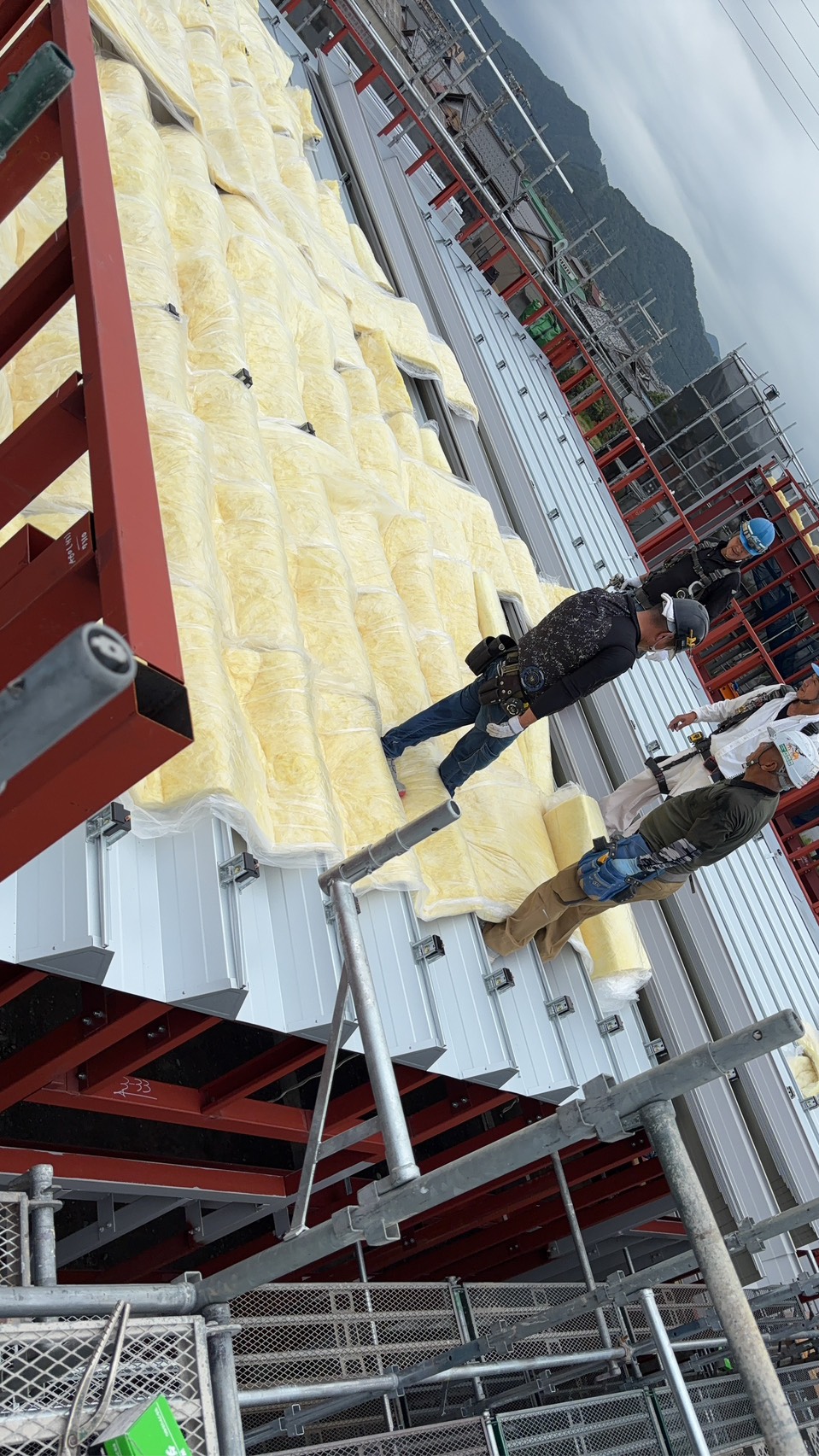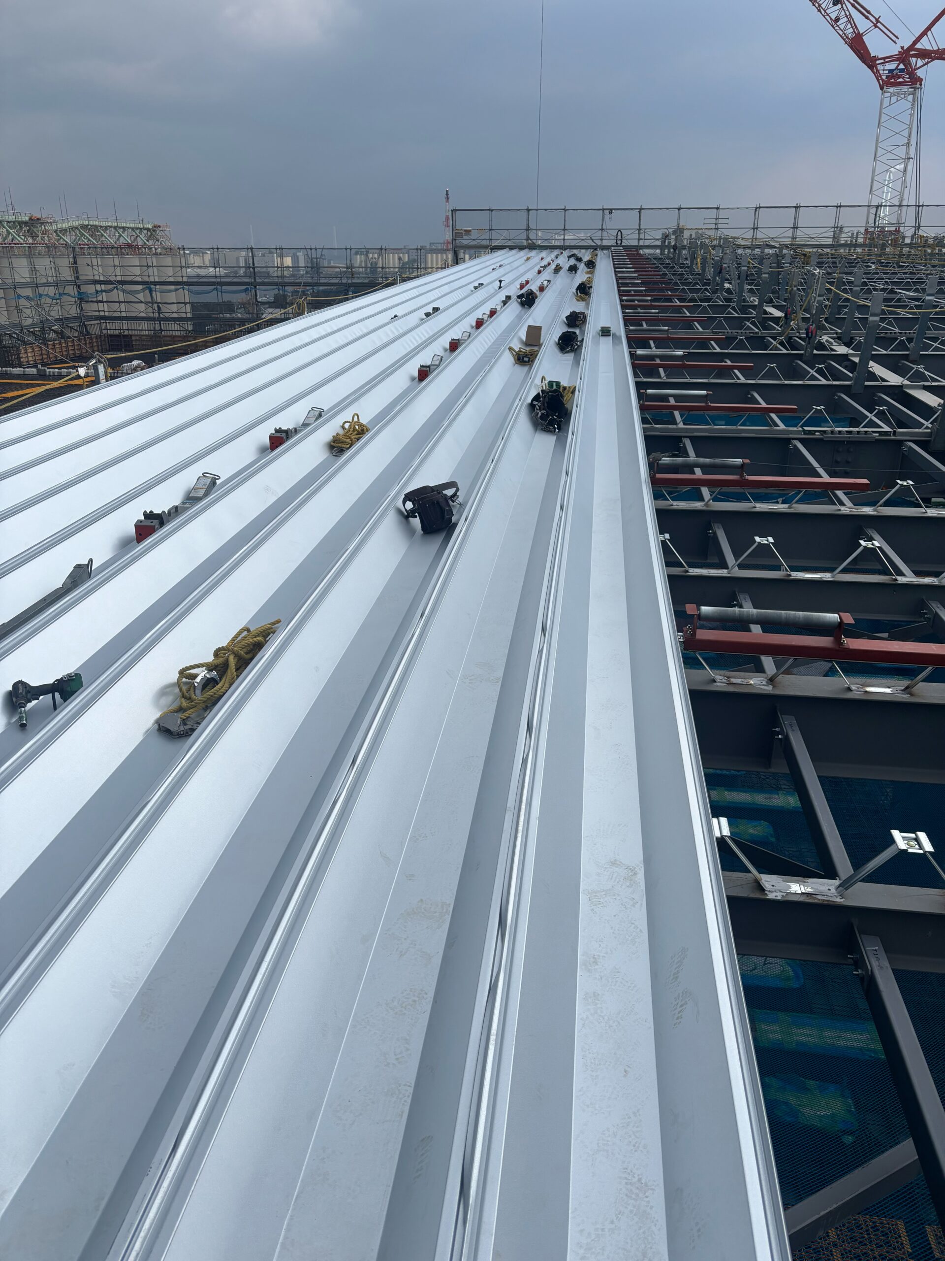 こちらは屋根の板金工事の様子です。 工場・倉庫などの大規模な現場が多く、ともに働く職人さんを現在募集しています。